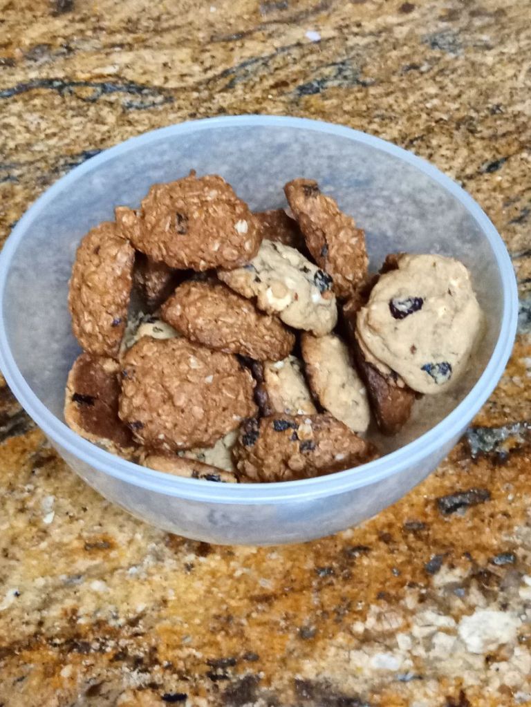 Here’s a bowl of oatmeal and cranberry white chocolate cookies I made.
